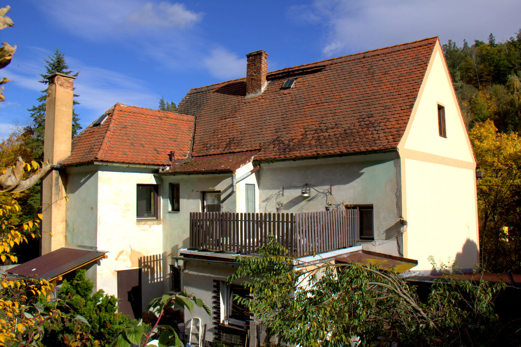 Pokud sháníte dům ve Stříbře a jste aspoň trochu romantik, přijďte se podívat k Červené lávce. Přímo u ní, na levém břehu řeky Mže, je dům na prodej. V přízemí je byt 2+1 po částečné rekonstrukci (elektřina, dlažba, podlahové topení….). Kromě ložnice (14,50 m2) a pokoje ( 15,20 m2) spojeného s kuchyní (8 m2) je v přízemí ještě zádveří, komora, toaleta, velká koupelna (8,70 m) a chodba (12 m2) s průchodem do dvora. V 1.patře je kuchyně (15,40 m2), obývací pokoj (32 m2), ložnice (13 m2) a WC, dále chodba se vstupem na terasu. (Výměry jsou orientační.). V podkroví je prostorná půda s okny ve štítu i do ulice – pravděpodobně by ji bylo možno využít pro vybudování dalších obytných místností. Dům je napojen na obecní vodu, odpad je sveden do jímky. Ohřev vody je el. bojlerem. K vytápění domu lze využít tepelné čerpadlo vzduch voda, funkční je i kotel na tuhá paliva. Pro zvýšení tepelného komfortu horního bytu slouží krbová kamna v obývacím pokoji. Vedle domu je garáž a sklad, na dvoře ještě zděné kolny. Dvůr je zčásti vydlážděný. Zahrada (971 m2) je terasovitá, její horní část je díky velké svažitosti obtížně využitelná.